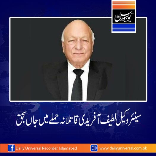 سابق صدر سپریم کورٹ بارعبدالطیف آفریدی فائرنگ حملے میں زخمی ہوگئے۔ سابق صدر سپریم کورٹ بارعبدالطیف آفریدی پر نامعلوم افراد نے فائرنگ کردی، جس کے نتیجے میں وہ جاں بحق ہوگئے۔ پولیس حکام کے مطابق فائرنگ کی اطلاع ملتے ہی پولیس کی بھاری نفری نے ہائیکورٹ کو گھیرے میں لے لیا، جب کہ ریسکیو ٹیم نے عبدالطیف آفریدی کو لیڈی ریڈنگ اسپتال منتقل کردیا۔ حکام کا کہنا ہے کہ فائرنگ کا واقعہ پشاور ہائی کورٹ کے بار روم میں پیش آیا، جہاں عبدالطیف آفریدی بیٹھے تھے، کہ نامعلوم افراد نے اندر گھس کر فائرنگ کردی جس میں وہ زخمی ہوگئے۔ ترجمان لیڈی ریڈنگ اسپتال نے بتایا کہ لطیف آفریدی کو مردہ حالت میں ایل آر ایچ لایا گیا، انہیں متعدد گولیاں لگیں۔ دوسری جانب عبدالطیف آفریدی کے جسد خاکی کو ایمبولینس کے ذریعے آبائی گاں روانہ کردیا گیا ہے۔
