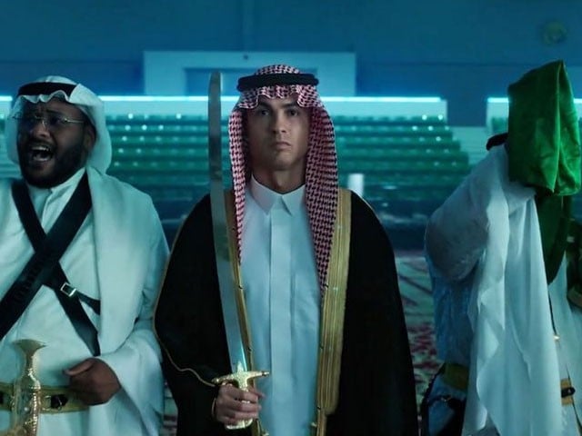 سعودی عرب کے قومی دن کی مناسبت سے النصر کلب نے سوشل میڈیا پلیٹ فارم ’ایکس‘ پر ایک ویڈیو پوسٹ کی ہے جس میں پرتگال کے عالمی شہرت یافتہ اسٹار فٹبالر کرسٹیانو رونالڈو کو ہاتھوں میں تلوار تھامے سعودی عرب کے ثقافتی لباس میں دکھایا گیا ہے۔