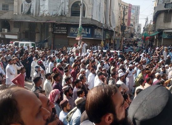 کراچی: سپریم کورٹ کے فیصلے کے خلاف مدینہ مسجد طارق روڈ کی انتظامیہ کے احتجاج میں عوام کی بڑی تعداد نے شرکت کی۔